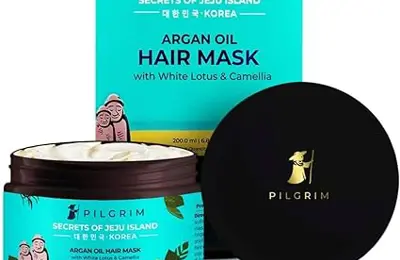 Pilgrim Korean Argan Oil Hair Mask (White Lotus & Camellia) nourishes dry and frizzy hair with rich botanical oils. It smooths strands, enhances shine, and improves overall hair texture.