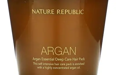 Nature Republic Argan Essential Deep Care Hair Mask nourishes dry and brittle hair with argan oil. It boosts softness and restores healthy shine.